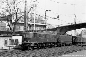 Nach knapp zwei Jahren kehrten die E19, inzwischen mit neuer Nummer als Baureihe 119 bezeichnet, in ihre fränkische Stamm-Heimat zurück. Das erste Mal, dass ich dort wieder einen der "Nürnberger Edelhirsche" vor die Kamera bekam, war am 13.02.72, als ich 119 011 (jetzt wieder Bw Nürnberg Hbf) zufällig im Vorfeld des Nürnberger Hauptbahnhofs von einem einfahrenden Zug aus erwischte. |