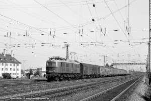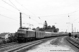 1972 war die Strecke zwischen dem Augsburger Hauptbahnhof und Hochzoll noch zweigleisig. 119 011 hat soeben mit dem "Saßnitz-Express", D490, die Lechbrücke passiert und rollt jetzt ohne große Anstrengung dem nächsten Halt in Augsburg Hbf entgegen. 14.08.72. |