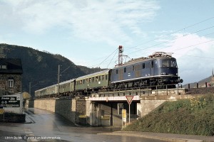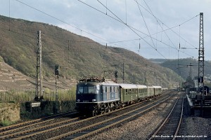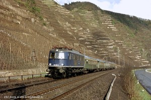 Auf der Rückfahrt nach Koblenz wurde 119 001 wiederum in Winningen abgepasst; die Zugnummer lautete jetzt E22181. Ein ausführlicher Bericht über die Veranstaltung in Koblenz findet sich in meinem DSo-Beitrag "Tag der DB in Koblenz" |