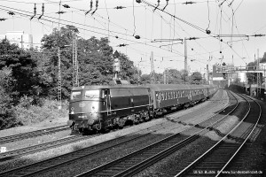 Am 11.06.86 begegnete mir 110 476 (DoB) in Höhe des S-Bahnhofs Düsseldorf Zoo. Für einen Gesellschafts-Sonderzug ist der Zug mit nur drei Wagen reichlich kurz; vielleicht ist es aber auch nur ein Leerreisezug. |