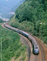 Geislinger Steige, Strecke Stuttgart - Ulm (- München); hier kamen die 110er im Jahr 1979 noch im Blockabstand. Die Kölner 110 454 hat am 01.09.79 einen Autoreisezug am Haken, den sie ohne Schub über den Berg bringen muss. 7 Reisezug- und 2 Autotransportwagen – das dürfte hart an der Grenzlast gewesen sein. |