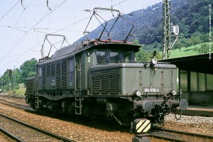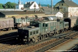 Nach dem 2. Weltkrieg verblieben in Österreich 44 Maschinen der Baureihe E94. Zusammen mit den 3 Nachbauten für die ÖBB bildeten diese die Baureihe 1020. Schon frühzeitig erhielten alle Loks neue Doppel-Düsen-Lüftungsgitter in den Vorbauhauben. Die zusätzlichen Luftansaughutzen auf den Vorbauhauben waren dagegen nur bei wenigen 1020 zu finden. Aufnahme Thomas Welzel: 1020.25 (Szb), ex E94 027, Villach, 04.08.78. |