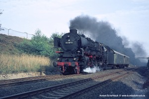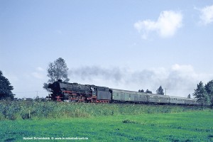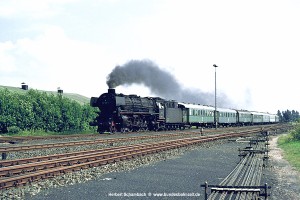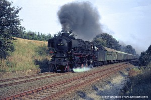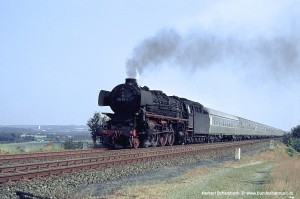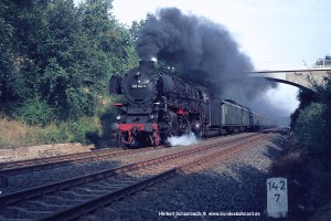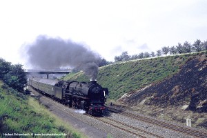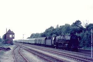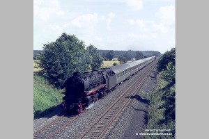Nach zwei weiteren Zügen erscheint mir als letztes Bild von dieser am 06.08.71 aufgesuchten Stelle das Foto von 012 080 mit D1322 zeigenswert, weil hier ein wenig mehr Umgebung sichtbar wird. |