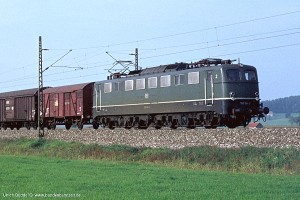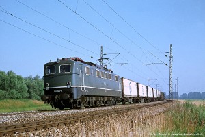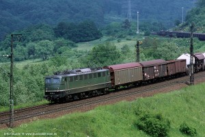 150 006 – Neubau nach Unfall: Aufnahme: 150 006-5 (NüR) mit Sg52323 bei Mertingen, 12.07.77. |