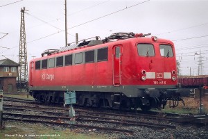 Noch seltener war das rote DB-Logo auf einer blau/beigen 150. Aufnahme J. Kolbe, Slg. W.& H.Brutzer: 150 033-9 (NüR), Hagen-Vorhalle, 03.02.94. |