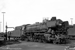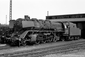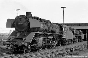 Die Neubekesselung durch die DR (-Ost) veränderte das Aussehen der Loks nur unwesentlich. Die Magdeburger 41 131, aufgenommen am 17.09.69 im Bw Helmstedt, ist bereits mit dem famosen 39E Kessel ausgerüstet, erkennbar an dem fehlenden Speisedom und den seitlich tief herabreichenden Aschkästen. Der Mischvorwärmer stört jedoch ein wenig die ursprüngliche Harmonie der Formen. |