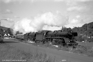 Mit zwei 41 war der Zug flott unterwegs, zudem waren die Straßen dürftig und das Auto lahm. Und so konnte der Sonderzug erst kurz vor Dillenburg dank eines Betriebshalts in Dillenburg-Kurhaus wieder eingeholt werden. Für eine gründliche Motivwahl blieb da leider keine Zeit. |