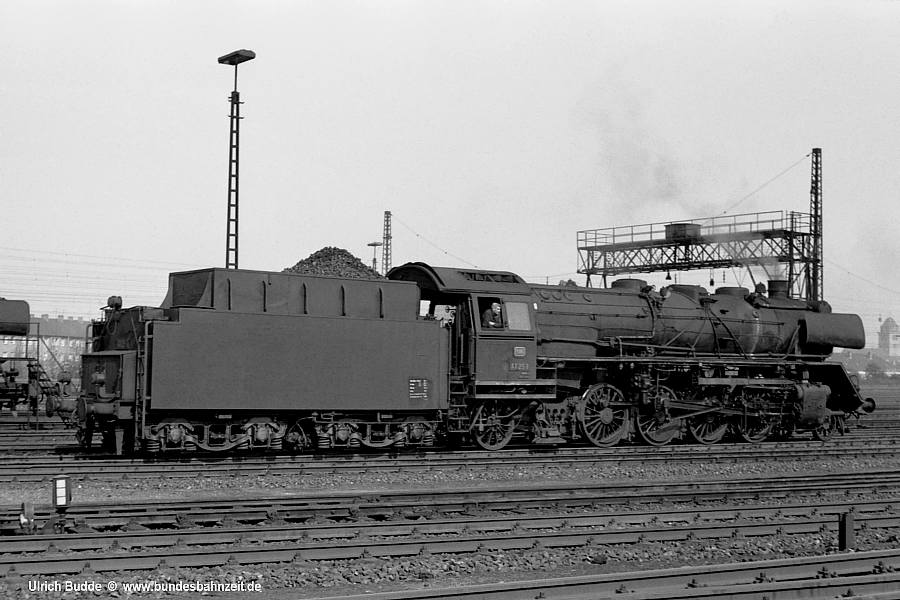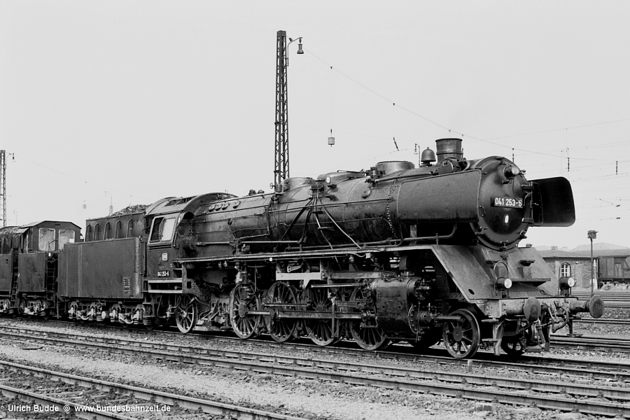 ... auch sie erhielt noch die neue EDV-Nummer. Als 041 253 steht sie am 31.07.70 in ihrem Heimat-Bw. Gut einen Monat später, am 09.09.70, wird sie als vorletzte Altbaukessel 41 abgestellt. |