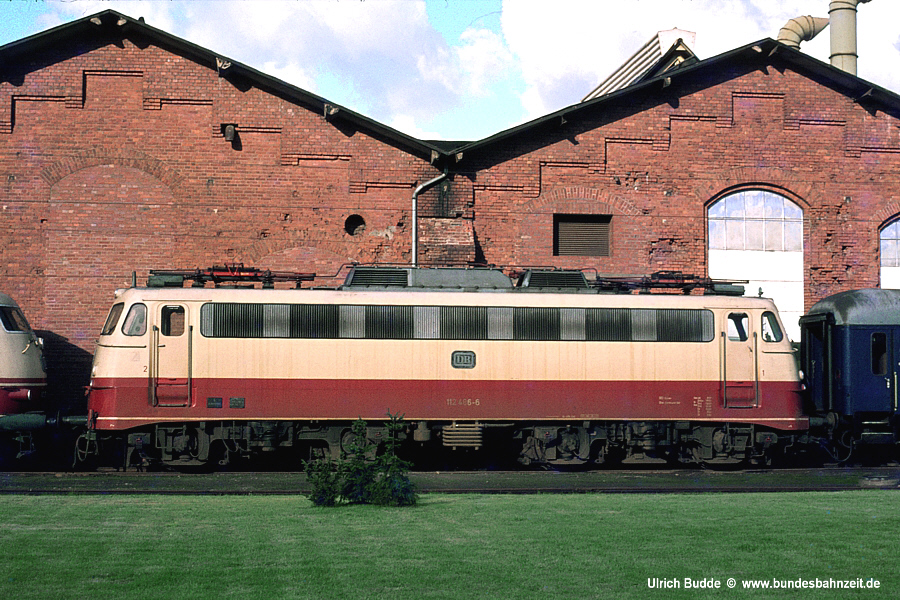 Ein willkommenes "Mitnahmebild" war anschließend die Vorbeifahrt des E2025, gezogen von 112 502 des Bw Dortmund Bbf. |