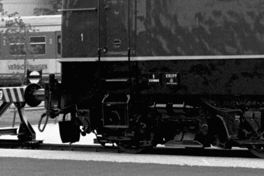 Natürlich habe ich damals auch weitere Fotos von der Lok gemacht. Und etwas mehr von der Seite ist das Siemens Fabrikschild klar zu sehen. |