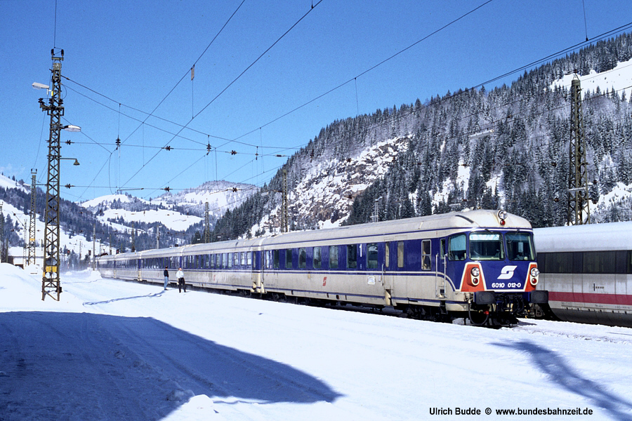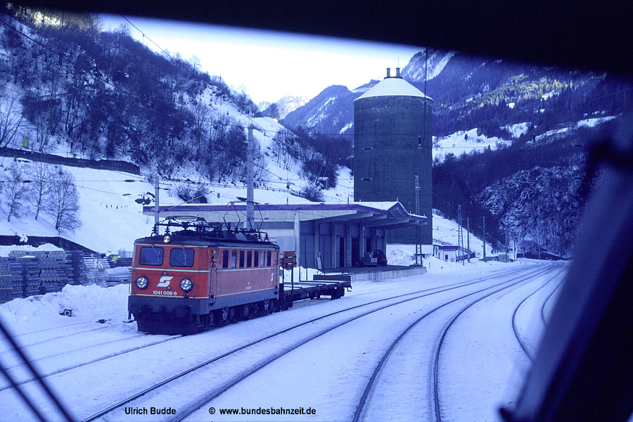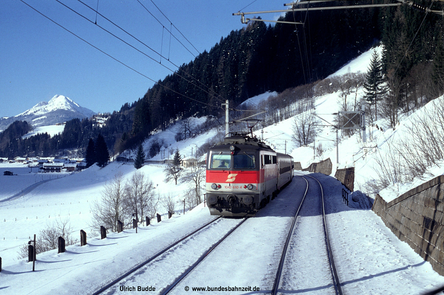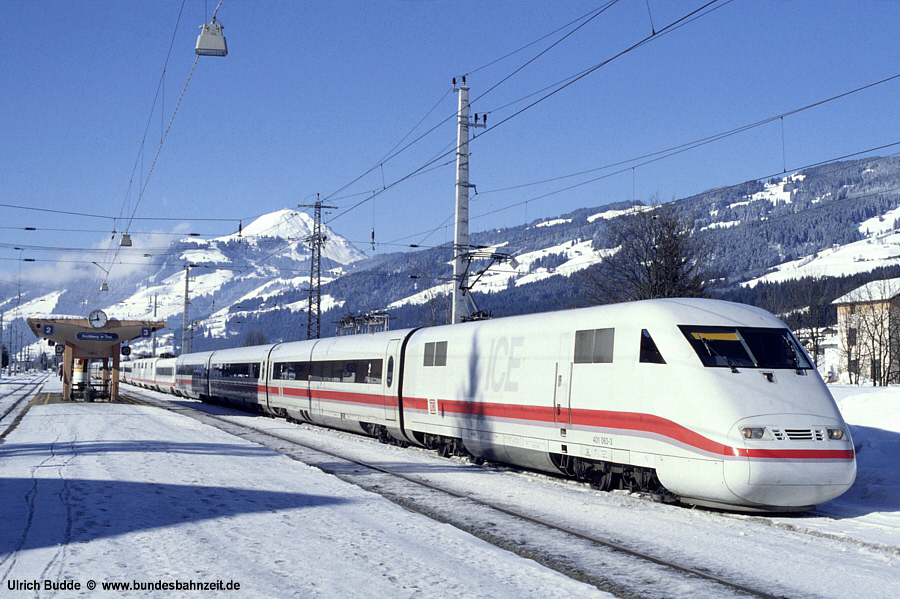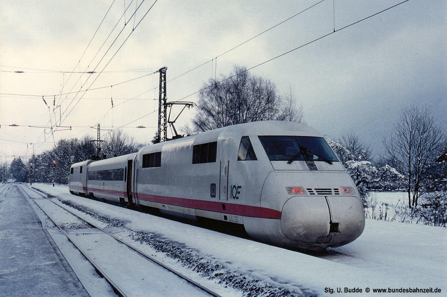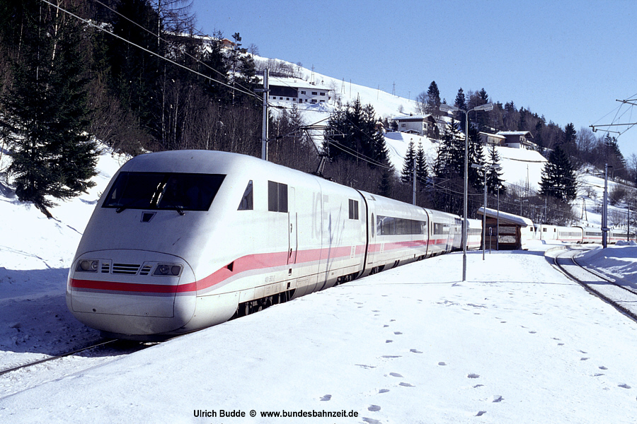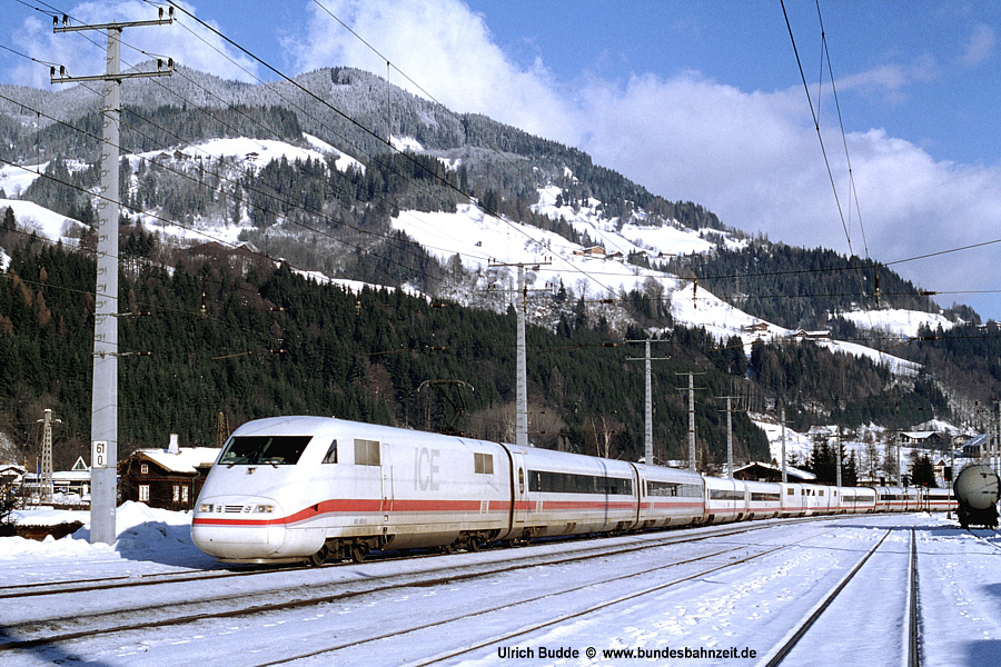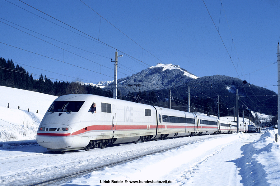 Fremdaufnahme: 410 001 in einem unbekannten Bahnhof zwischen München und Kufstein am 04.01.95. |
