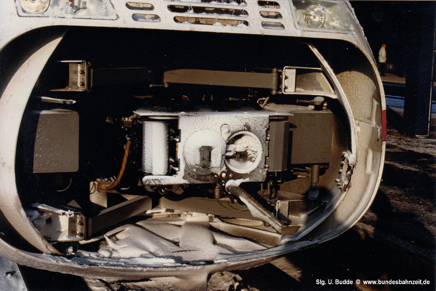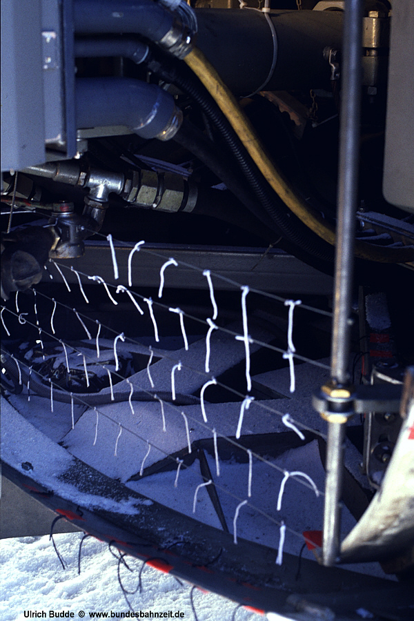 Fremdaufnahme: Schneeeintrag bei Fahrt mit geöffneten Bugklappen am vorlaufenden Triebkopf. |