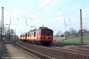 Kurze Zeit später ist es sogar eine Dreifach-Einheit mit ET25 016a am Zugschluss, die sich durch das Gleisgewirr des Bahnhofsvorfelds schlängelt. Beinahe hätte mir die einfahrende E41 207 noch einen Strich durch das vorher ausgeguckte Motiv mit Bahnhofsschild und E10 gemacht; so musste ich halt etwas früher abdrücken. |