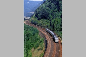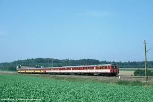 Über einen Zeitraum von exakt 50 Jahren war die Verbindung Stuttgart - Tübingen die klassische ET25 Strecke schlechthin. Am 05.09.77 waren davon aber bereits 42 Jahre vorbei, als uns bei Oberboihingen, eine Station hinter Wendlingen, das 425-Pärchen 425 403 + 425 424 als E3611 entgegen kommt. |