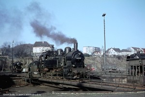 Auch an der vorderen Drehscheibe tat sich jetzt etwas, denn 78 159, die letzte Vohwinkler Lok dieser früher hier zahlreich vertretenen Baureihe, kommt aus dem Lokschuppen. Auf dem Plan stehen drei nachmittägliche Personenzüge auf der Rheinischen Strecke, die Wuppertaler Nordbahn von Vohwinkel über Mirke nach Wichlinghausen. Eine positive Überraschung war der relativ gute optische Zustand, war die Lok doch in den Wintermonaten durch ein extrem herunter gekommenes Äußeres aufgefallen. |