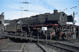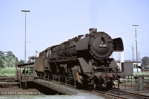Und noch eine weitere Dampflok war an diesem Tag auf den Freigleisen an der vorderen Drehscheibe anzutreffen: 44 1318, die kurz darauf zur Wartung/Reparatur in den Schuppen geholt wurde. Für solche Fahrten innerhalb des Bws war auch das Schuppenpersonal fahrberechtigt. |
