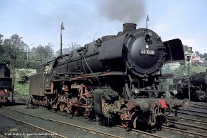 Kurz darauf verließ 44 1558 die illustre Runde zu ihrem nächsten Einsatz. Dieser Jumbo präsentiert sich in einem für Vohwinkler Verhältnisse ungewöhnlich guten Zustand, was aber sicher nicht der Grund dafür ist, dass diese Maschine noch heute bei den Eisenbahnfreunden Hamm als Museumslok besichtigt werden kann. |