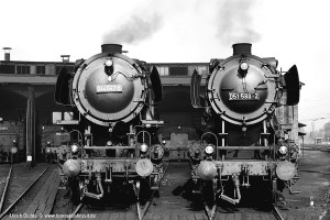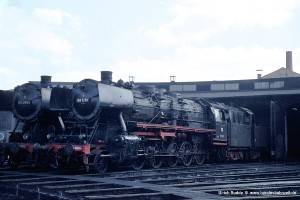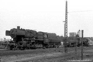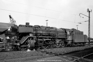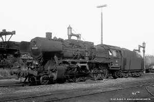 Die optisch auffallende, und nach meinem Geschmack sehr ansprechende Variante der Baureihe 50 mit Wannentender war im Bw Nürnberg Rbf gleich mehrfach vertreten. In diesem Fall war es 053 057-6, die gerade das Bw verließ. |