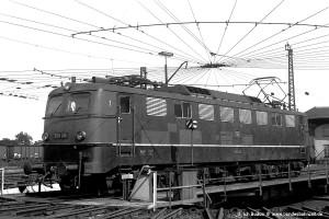 Diese Frage stellte sich dagegen nicht bei einer E50 der ersten Bauserie mit alter Nummer: Mit E50 016 auf der Drehscheibe musste ich mich bei meinem (vermutlich) unangemeldeten Aufenthalt im Bw schon in die "gefährliche Zone" begeben. |
