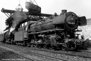 Dort an der Bekohlungsanlage entstand die Aufnahme von 044 575-9 (ex 44 1575), die wie etliche andere Nürnberger 44 schon umgezeichnet war. |