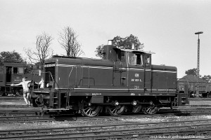 Bei 261 003-8 (NüH, ex V60 003) war es im Gegensatz zur V60 von Bild 12 keine Frage, auf den Auslöser zu drücken; handelte es sich doch um einen der vier Prototypen der Baureihe V60. Durchaus bemerkenswert auch die "Dienstkleidung" des Rangierers vorn rechts auf der Lok. |