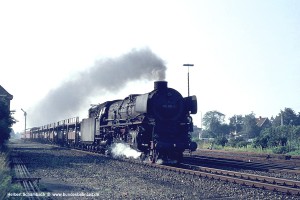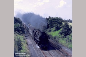Nach zwei weiteren Zügen erscheint mir als letztes Bild von dieser am 06.08.71 aufgesuchten Stelle das Foto von 012 080 mit D1322 zeigenswert, weil hier ein wenig mehr Umgebung sichtbar wird. |