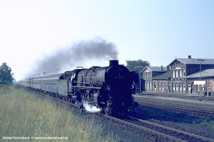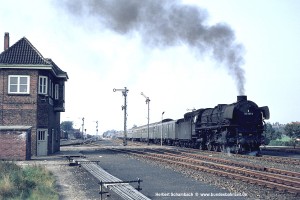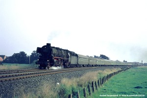 Auch den Fotografen Herbert Schambach zog es dorthin. Aus dem Fundus seiner 1969 und 1971 entstandenen Aufnahmen habe ich diese Galerie zusammengestellt und dafür eine Überschrift gewählt, die sich bewusst an die Galerie mit meinen eigenen schwarz/weiß Bildern anlehnt, die in der gleichen Zeit entstanden – siehe Mit der 012 nach Westerland. Wie dort sind die Bilder von Süd nach Nord angeordnet, unabhängig von der Fahrtrichtung der darauf zu sehenden Züge.